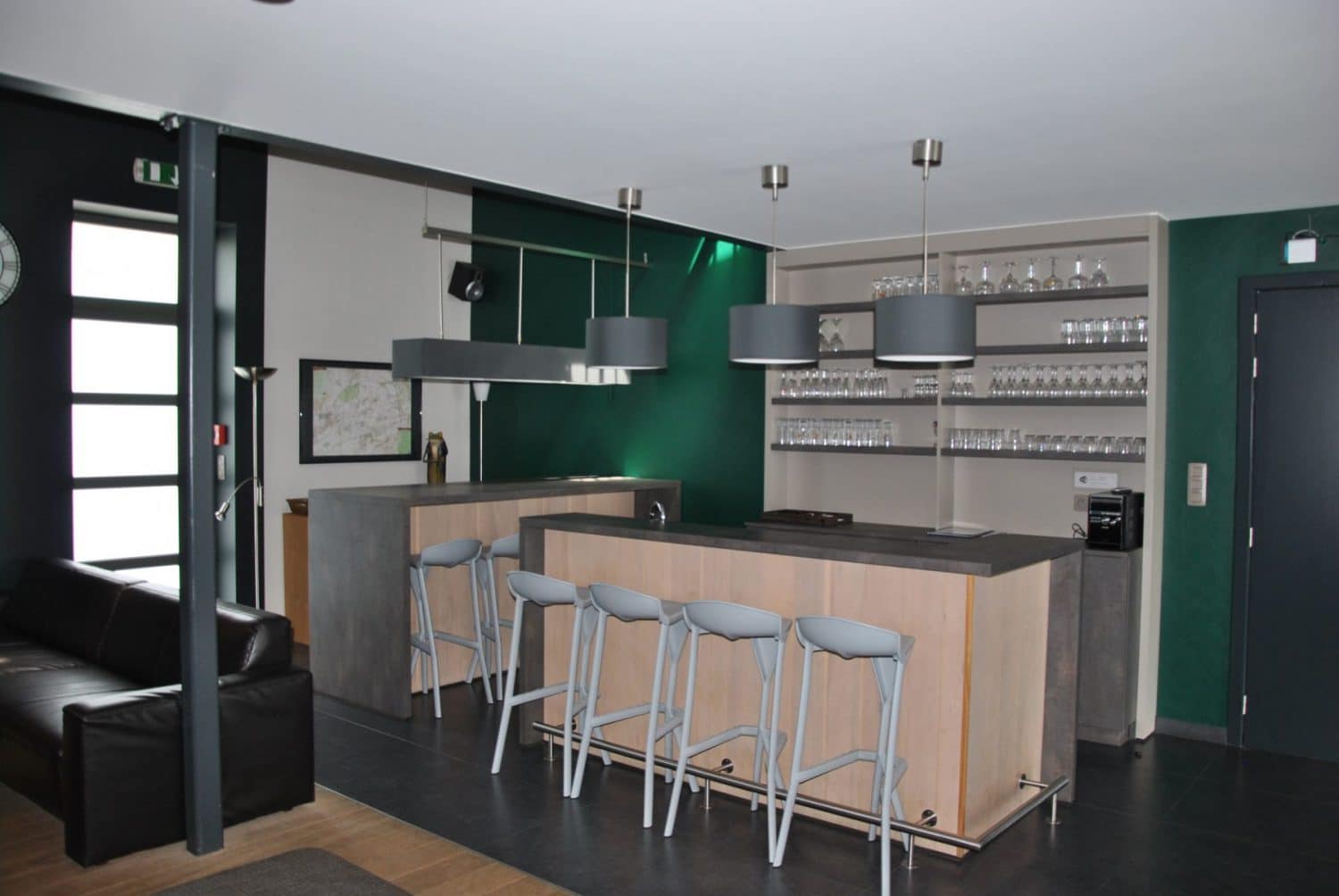 - grote eettafel voor 22 personen, 2 kinderstoelen.